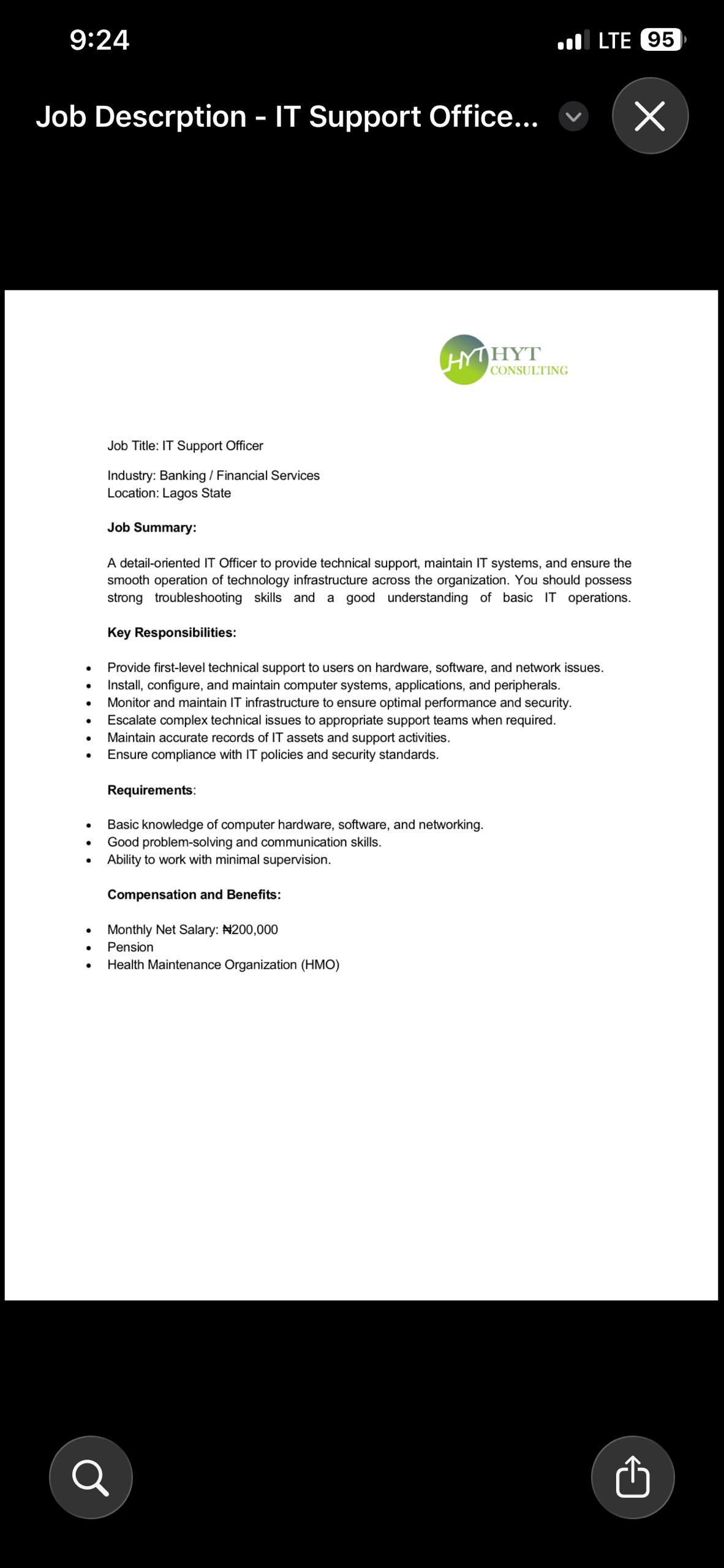 Job Summary:A reputable banking firm is seeking a competent and detail-oriented IT Officer to provide technical support, maintain IT systems, and ensure the smooth operation of technology infrastructure across the organization. The ideal candidate should possess strong troubleshooting skills and a good understanding of basic IT operations. Key Responsibilities: Provide first-level technical support to users on hardware, software, and network